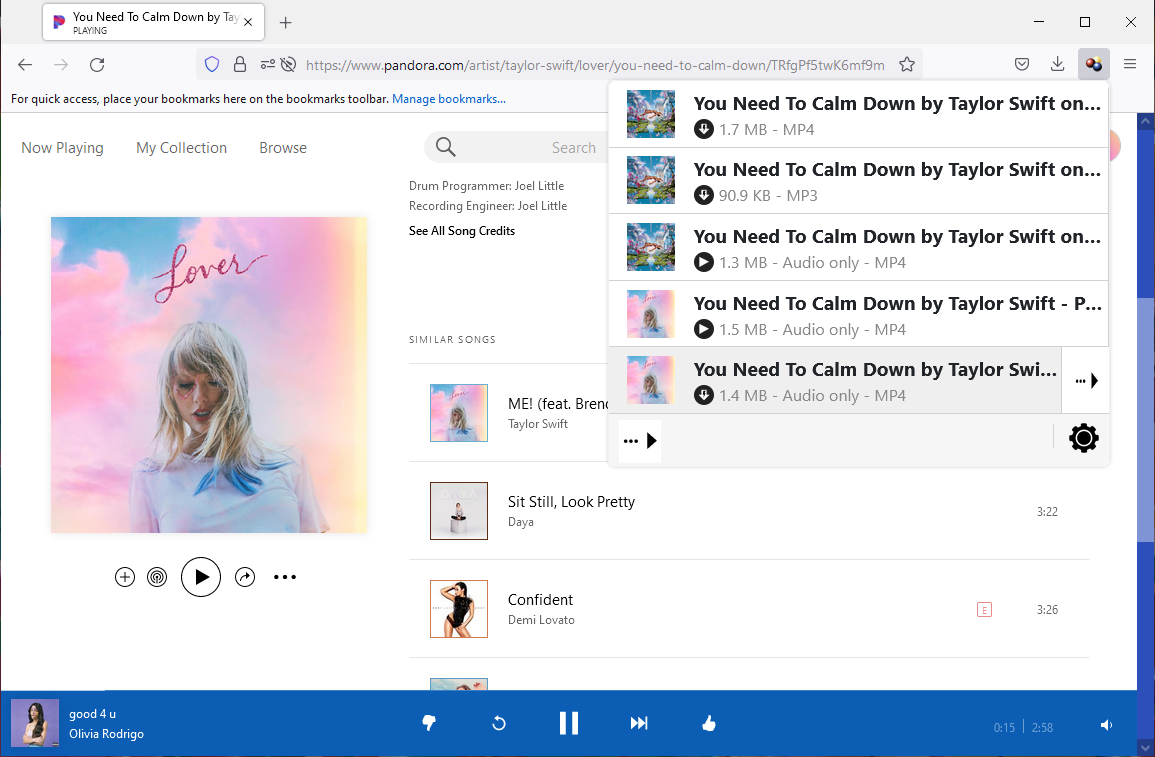Video DownloadHelper is available for Chrome, Firefox, and Edge. Once you have the extension installed, head over to Pandora website and start playing any track. Then click on the extension icon at the top right corner.
